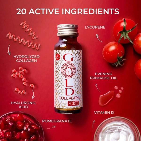 يؤدي إلى ظهور التجاعيد وضعف الشعر والمفاصل. Gold Collagen Forte يوفر