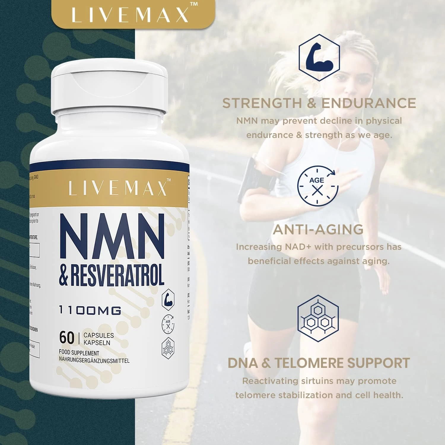 يقدم هذا المكمل الغذائي NMN (أحادي نيوكليوتيد النيكوتيناميد) وTrans Resveratrol مزيجًا فعالًا من مضادات الأكسدة القوية التي تدعم صحة القلب، وتحارب الشيخوخة، وتعزز إنتاج الطاقة الخلوية.