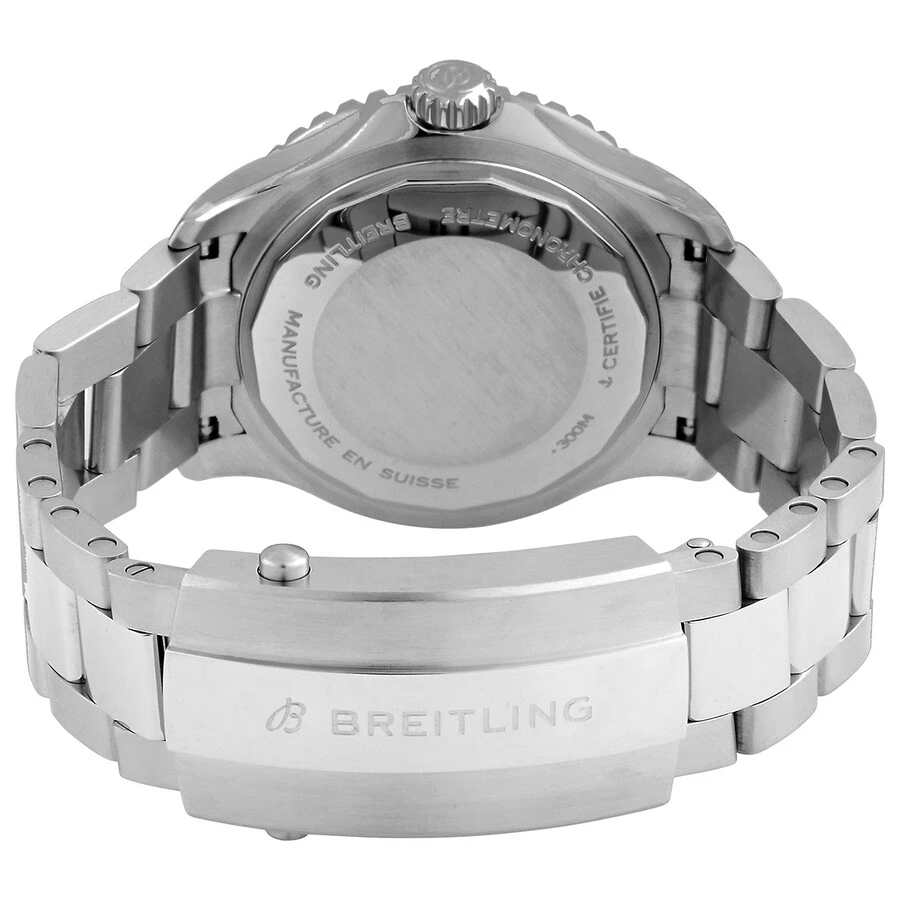 الحركة: محرك Breitling Calibre 17 آلي (Automatic) مع قدرة احتياطي طاقة 42 ساعة، يستند إلى حركة ETA 2824-2 موثوقة ومعدلة، موثق بشهادة كرونومتر من COSC، يزود الساعة بدقة زمنية عالية وأداء متين مع نظام حماية إضافي للصدمات.