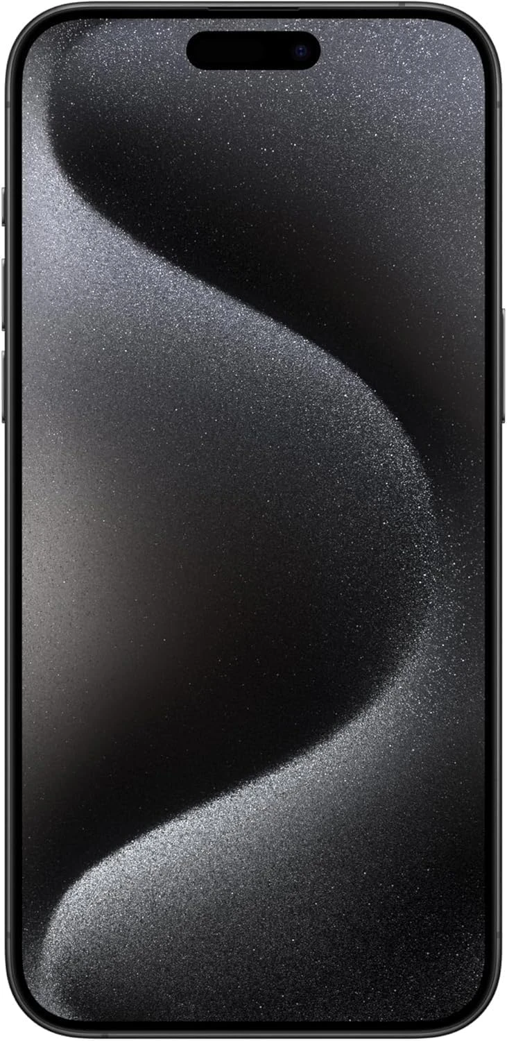 شاشة Super Retina XDR مقاس 12.5 بوصة مع ProMotion بتردد يصل إلى 120 هرتز وخاصية Always-On، بتصميم من التيتانيوم مع غطاء خلفي من الزجاج غير اللامع المزخرف، وزر الحركة، وDynamic Island.