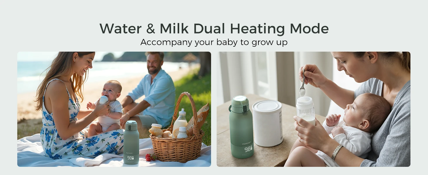 وضعان مع تحكم درجة حرارة دقيقة: اختيار بين تدفئة حليب الثدي (90/95/98°F) وتسخين الماء (98/104/110/122°F). لتلبية مختلف احتياجات الرضاعة بسهولة.